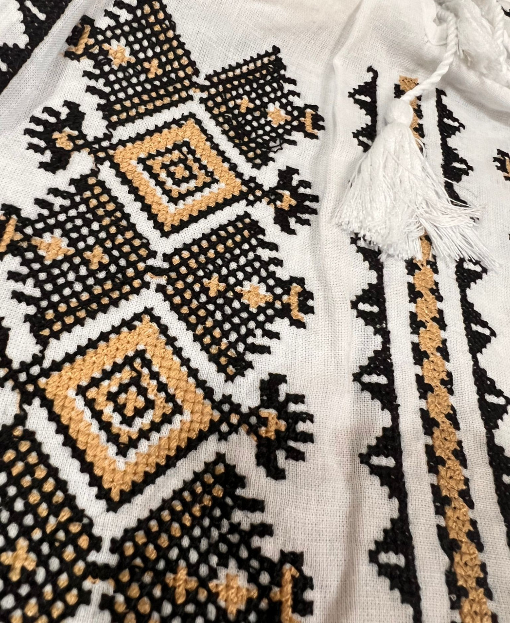 Ie traditionala , alba, broderie romb negru/auriu, femei